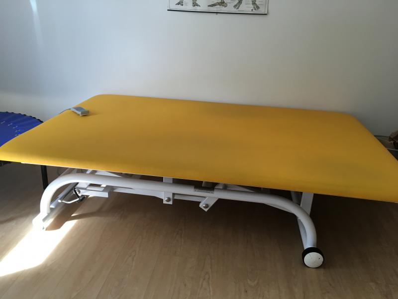 Bobathliege 120x200cm sie ist elektrisch höhenverstellbar von 45-97cm. Sie trägt bis zu 250kg und hat neu ca. 1.800,00 € gekostet.