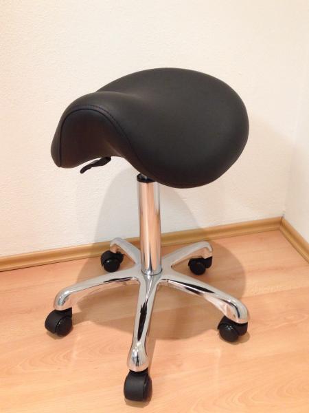 Sattelstuhl mit polierten chrome Fußkreuz und 5 Rollen